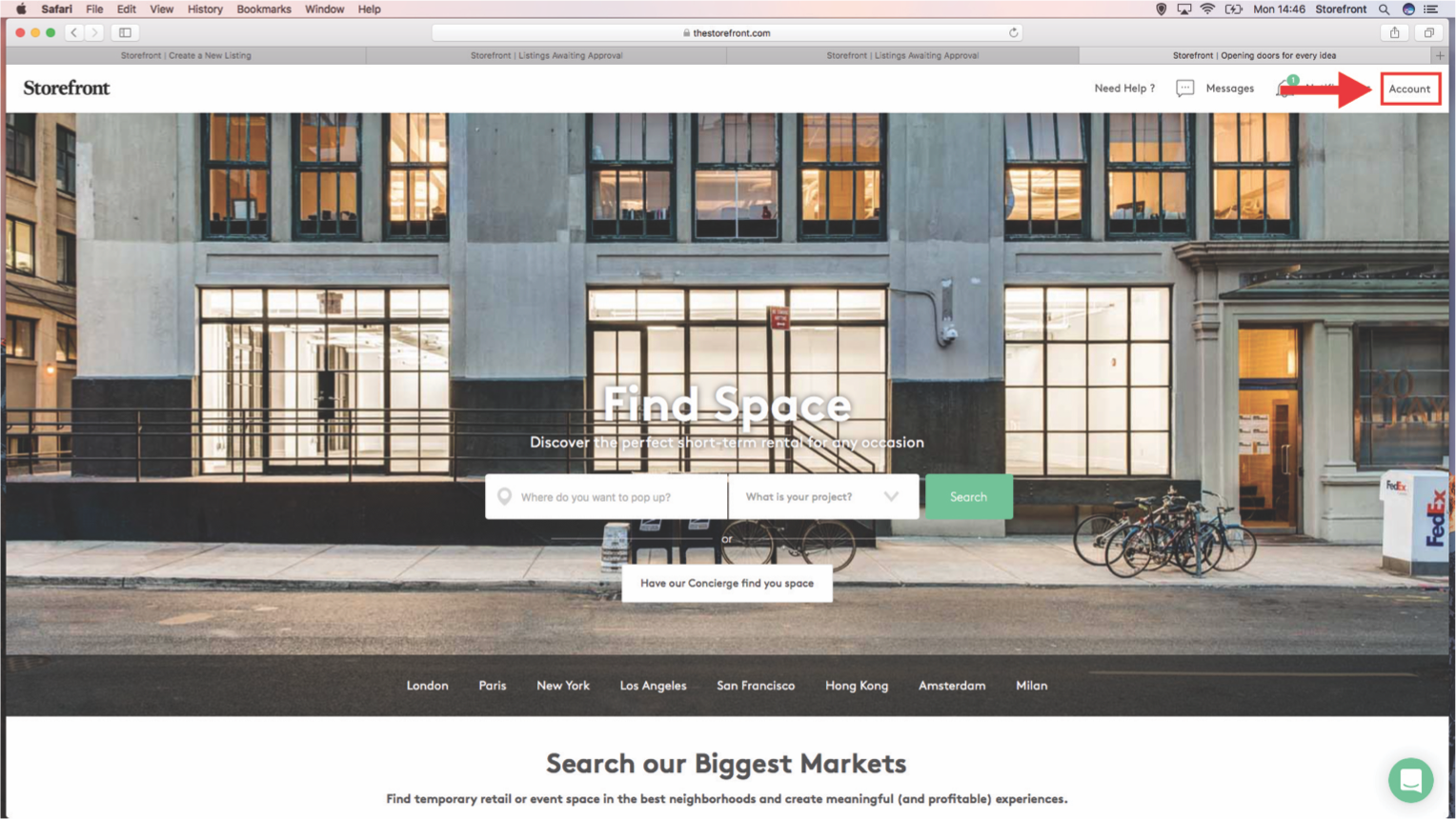 2. Cliquez sur "Compte" dans le coin supérieur droit comme indiqué dans l'image ci-dessous.