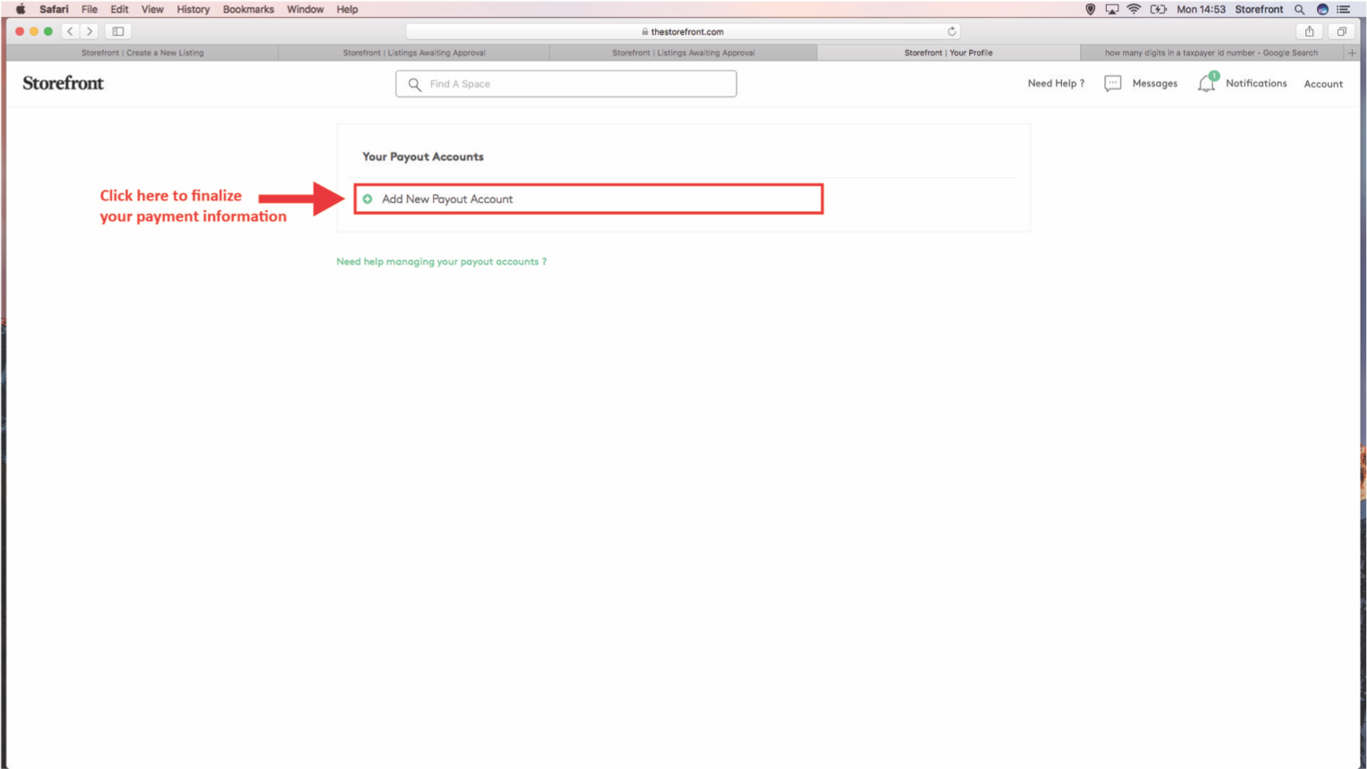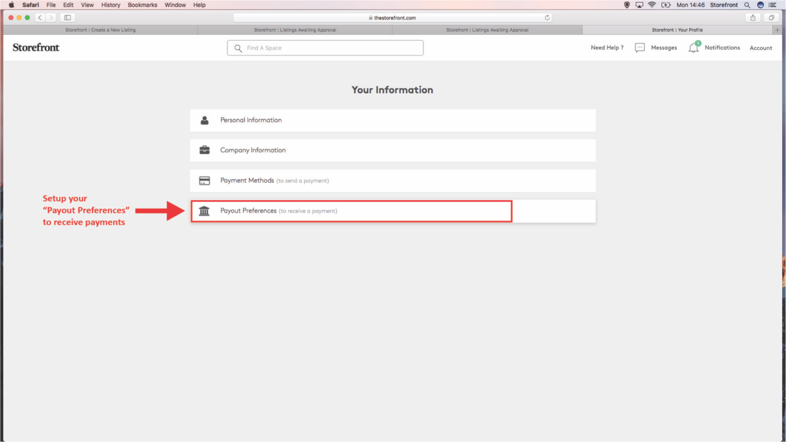 4. Cliquez sur « Préférences de paiement » pour passer à l'étape suivante. (https://www.spacetopop.com/fr/account/payout_methods)
